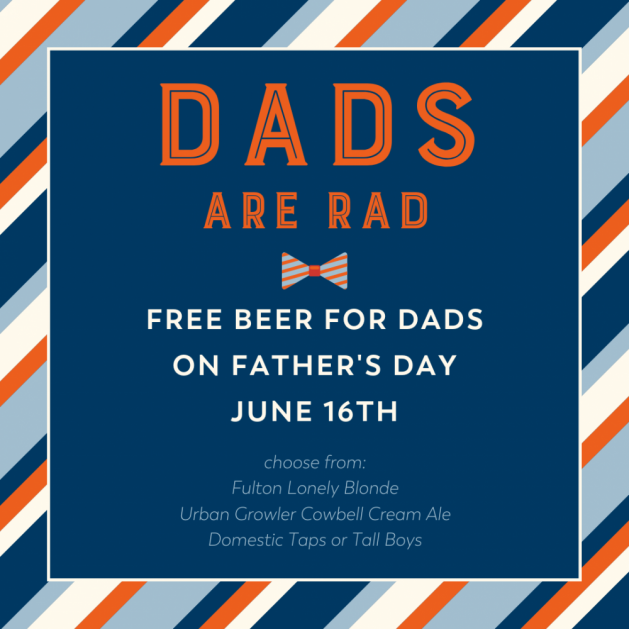 As a thanks to all the rad dads out there, we’re offering a free beer on Father’s Day, Sunday, June 16th.